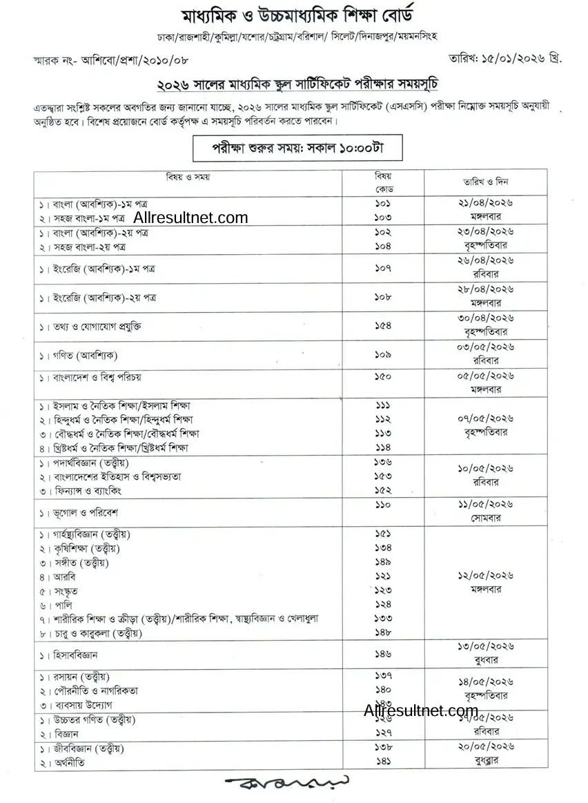 The Secondary School Certificate (SSC) examination routine for 2026 has been officially published for the Bangladesh Education Board. The exams will begin on April 21 and continue until May 20, according to the education authorities.