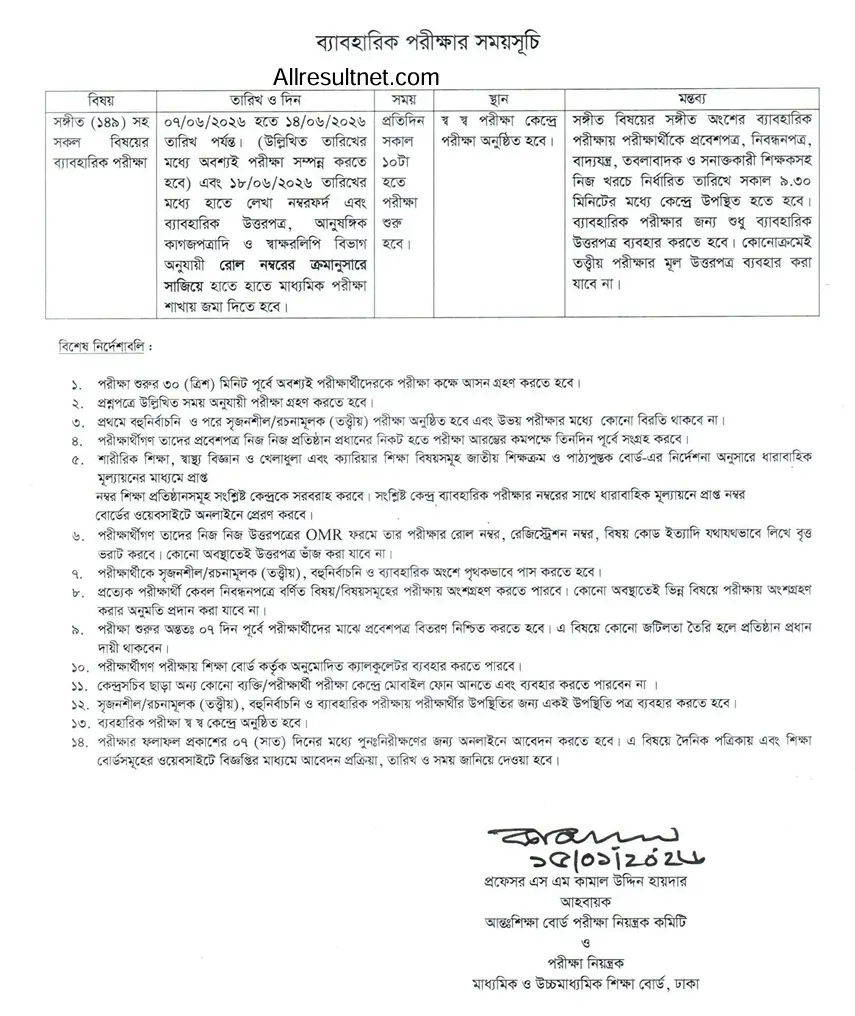 The notice was signed by Prof. S.M. Kamal Uddin Haidar, Controller of Examinations of the Dhaka Board. It applies to SSC candidates under all education boards in the country.